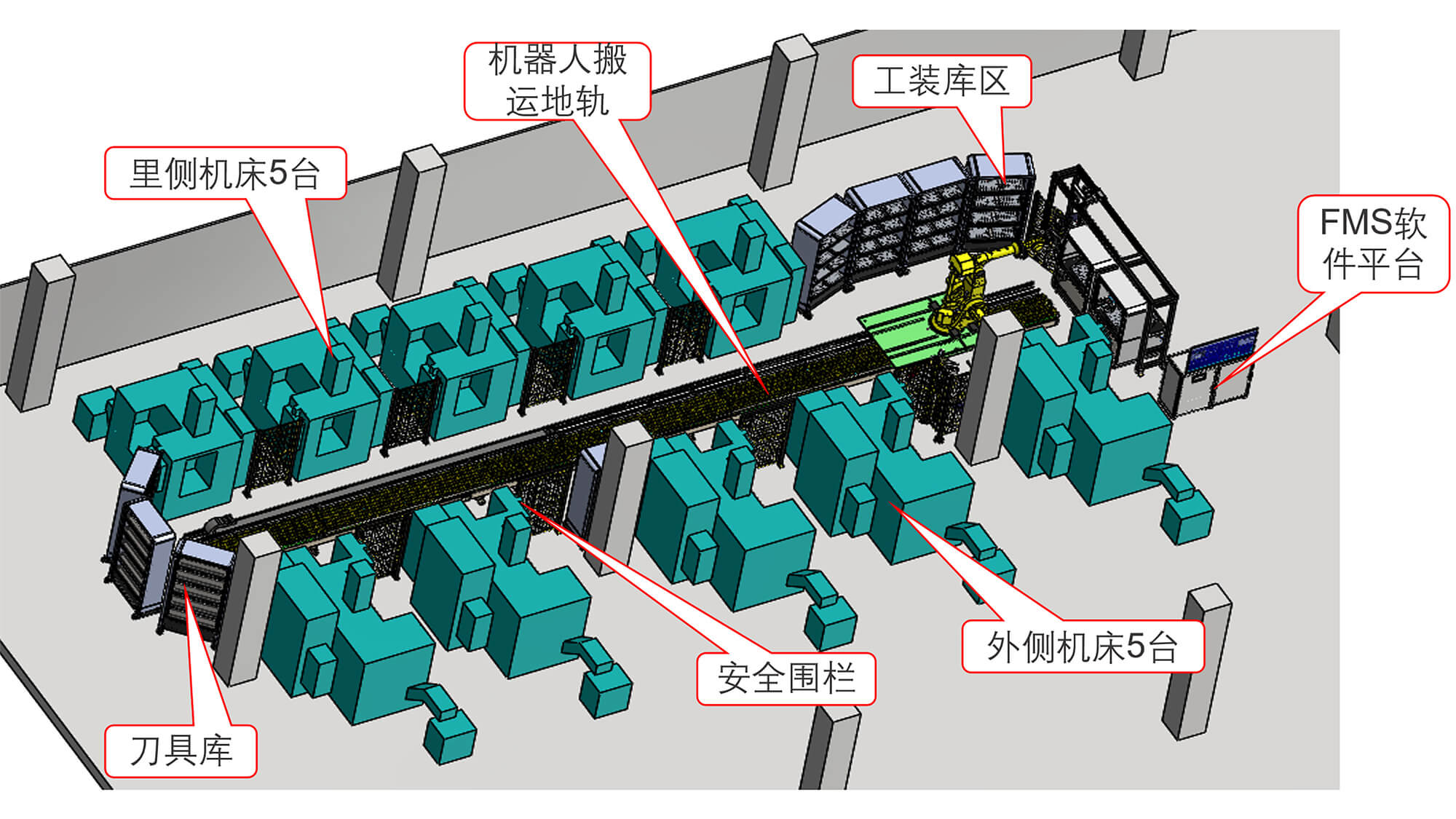 4臺機床、4個工裝料庫,一套柔性化系統(tǒng)組成