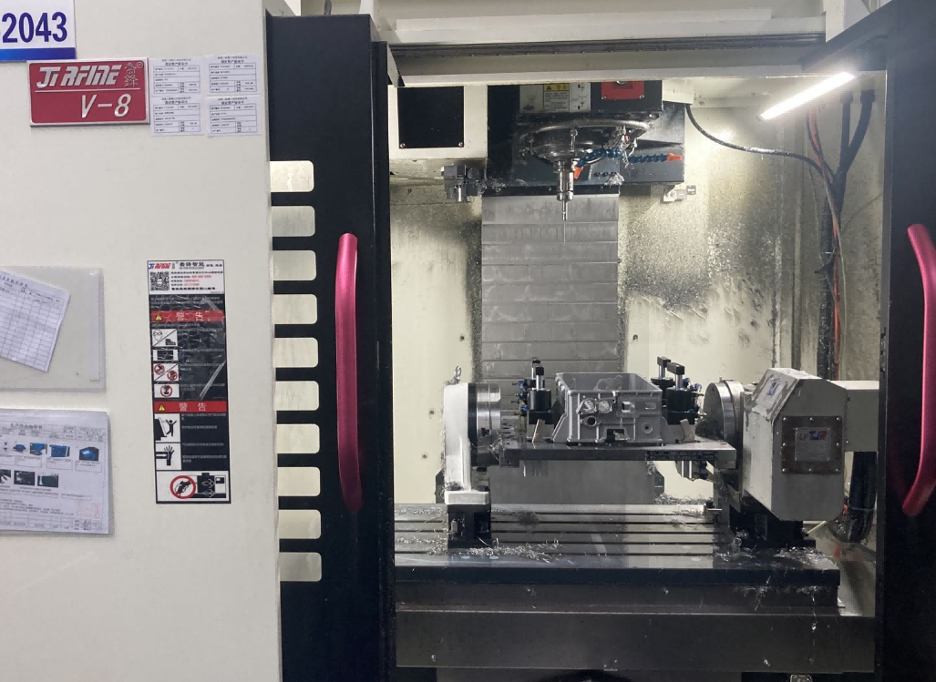 六面體搭配4軸分工序進(jìn)行加工;刀具懸伸長,與壁面薄壁距離近