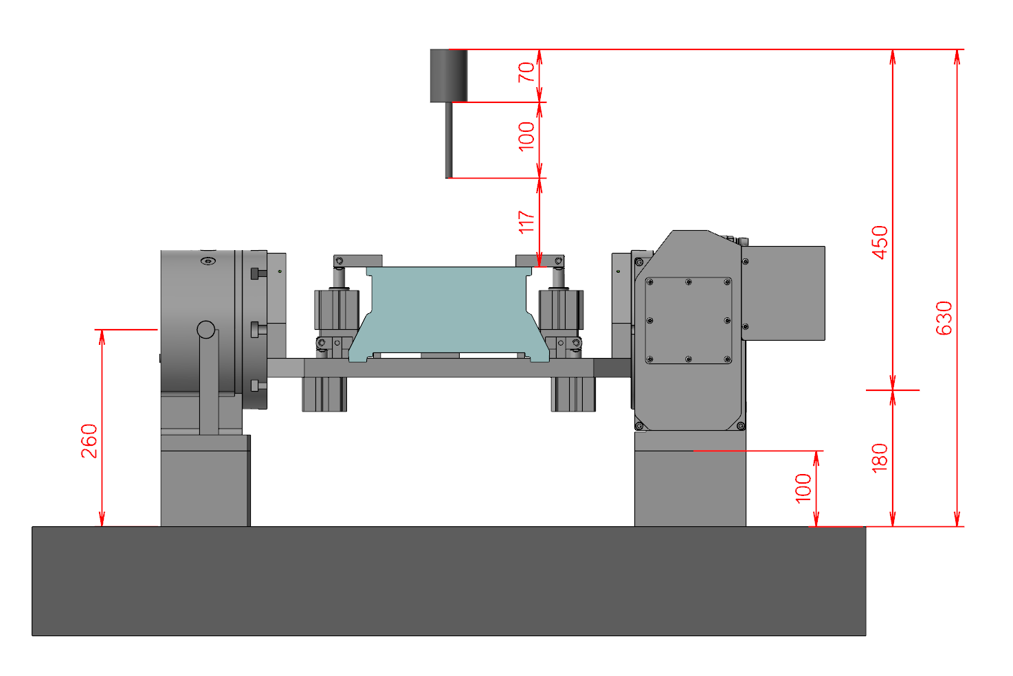 • 通過工件和夾具的最大外接圓模擬計(jì)算出四軸中心高需求